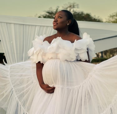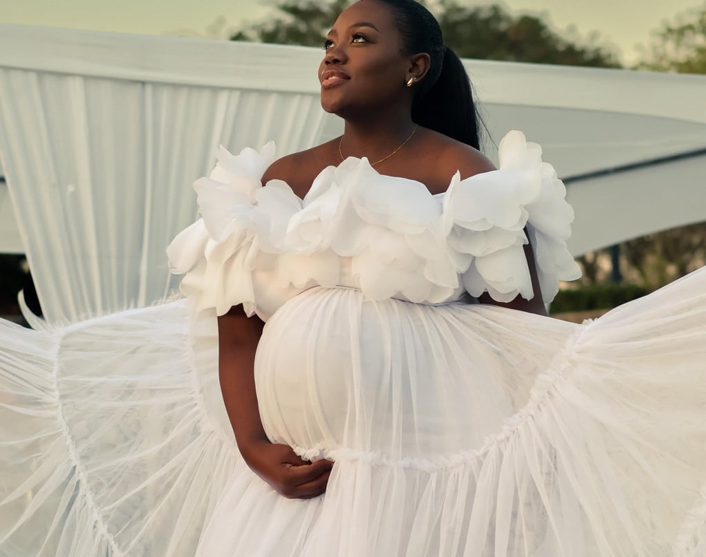 The Daisy Dress is pure elegance. Available in white and off-white, it offers a soft, ethereal look that flatters every bump beautifully. Its flowing silhouette and delicate design give it a dreamy, almost fairytale feel—perfect for capturing the magic of pregnancy.